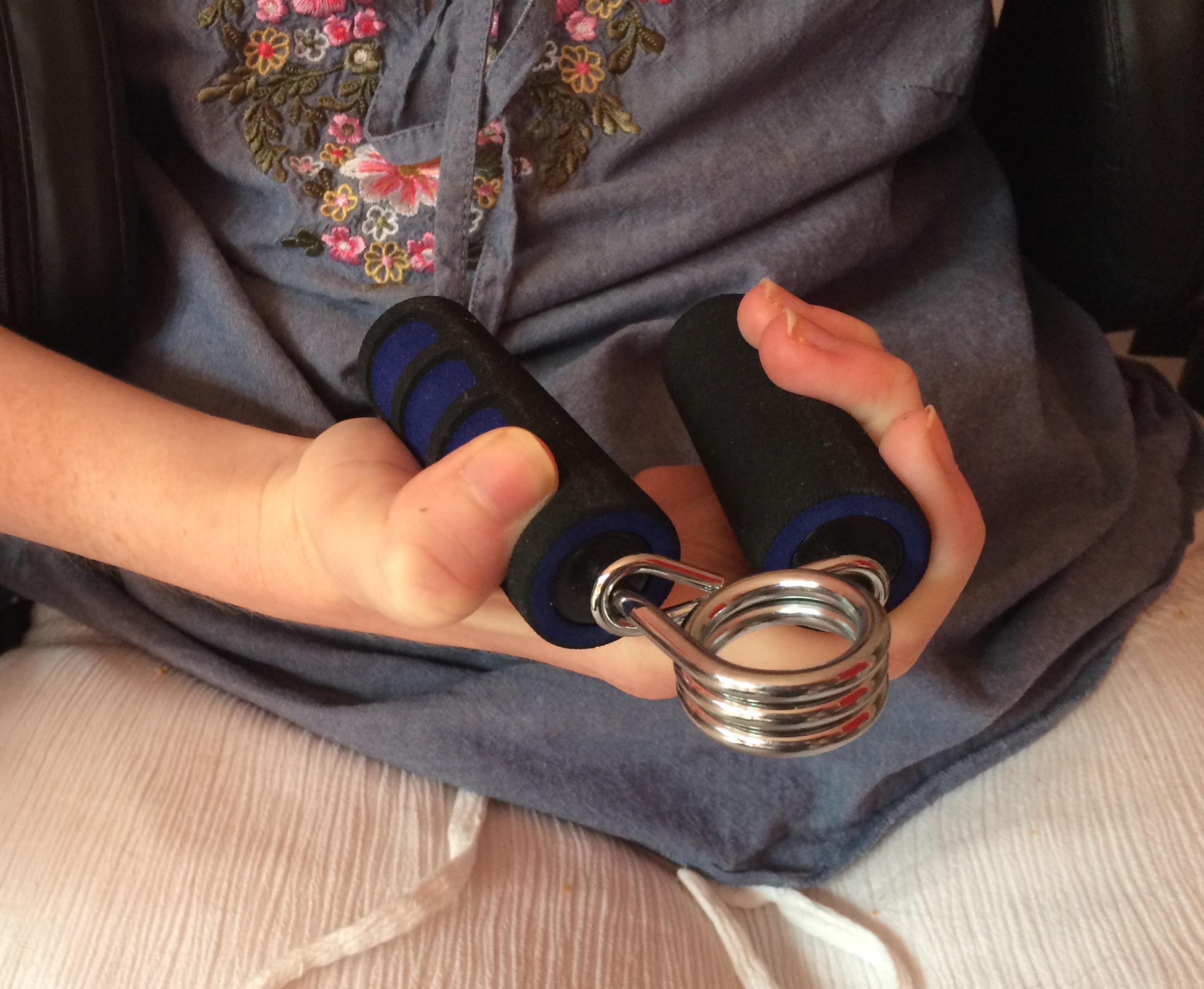 Exercises to strengthen hands and fingers In recent years I have found my fingers getting really stiff and as so much of my time revolves around using a computer I have found this to be a really limiting symptom. In an attempt to stop it from getting any worse I exercise my hands and fingers firstly using a stress ball which I bought from eBay. I found I was dropping this lot whilst using it so I asked my mom to attach it to a piece of string so why can wear it around my neck while I’m using it so it doesn’t fall on the floor. I also use hand grips which I bought from my local sports store and do this hand and finger workout http://www.webmd.com/osteoarthritis/ss/slideshow-hand-finger-exercises.