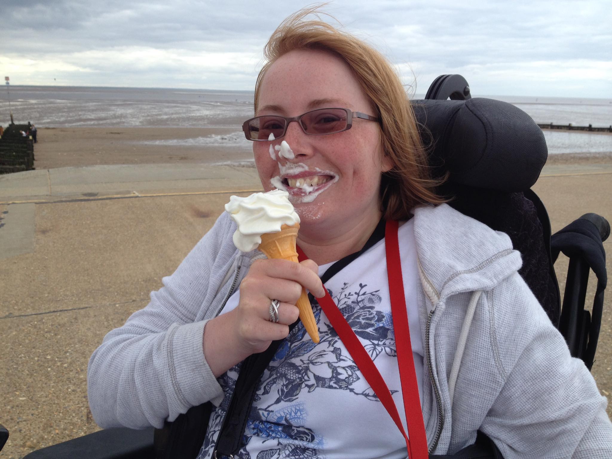 My grand parents used to live in Hunstanton 20 years ago and having always wanted to go back, my friend and I went there for the day in the previous year and I loved it. I managed to persuade mum that she'd love it too and within a few days she had found and booked an accessible holiday cottage about 5 minutes walk from where nan and granddad used to live 20 years ago for a week. We travelled there by getting a train to Nuneaton, another to Ely and another to King's Lynn. Train Assistance was booked a few days before travel by phoning Virgin Journey Care, so staff we there waiting at each station with a portable ramp to help me on and off the train. We then got a bus from King's Lynn to Hunstanton (all buses everywhere are low floor and wheelchair accessible). For more information see the using public transport page. The bus stop was about a minute's walk away from our cottage and once we were there we let ourselves through the garden gate which led onto a nice big garden and through the wide patio The sitting room/kitchen led onto the bedroom and on-suite bathroom. In this room was the reason why we stayed here - a track hoist from over the bed to the bathroom/toilet; I had to take my sling from home but the track hoist made things a lot easier for mum. Mum finds my morning routine hardwork and if we were staying in a regular hotel room so she would have to help me to stand-transfer as well, a week-long stay just wouldn't have been possible. These rooms were also really well adapted with an adjustable bed, remote-controlled ceiling fan, a closomat toilet and a showerchair on wheels. The cottage was in a great location - adjacent to Tesco, next to a pub/resturant which we ate in a few times, two minutes' walk from a chippy and five minutes' walk from the sea front. It was a very nice relaxing week - maybe I'm just old enough to appreciate these things now I'm in my 30's :-).